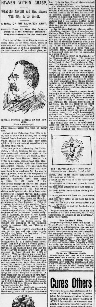 (ILLUSTRATION: 1892 San Francisco Examiner article mentioning Randolph’s acquaintance Isaac B. Rumford, a nursery owner as of 1862 but now involved in the “Edenic Institute” in Los Gatos.)